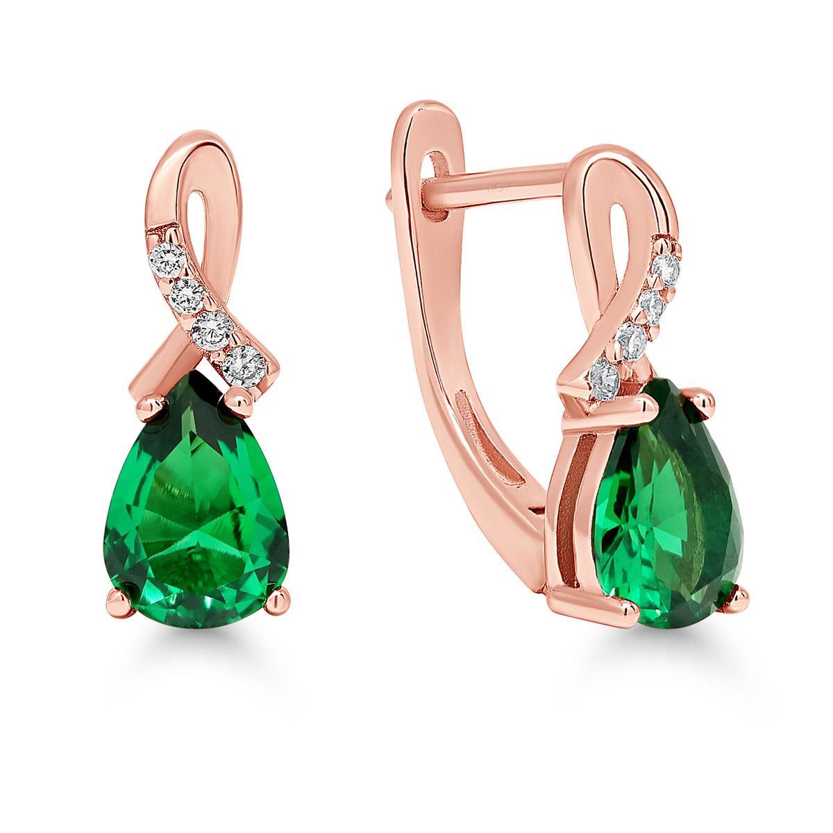 - pisaran muotoiset, smaragdinvihreät zirkoniakivet, sekä pieniä, kirkkaita zirkoniakiviä